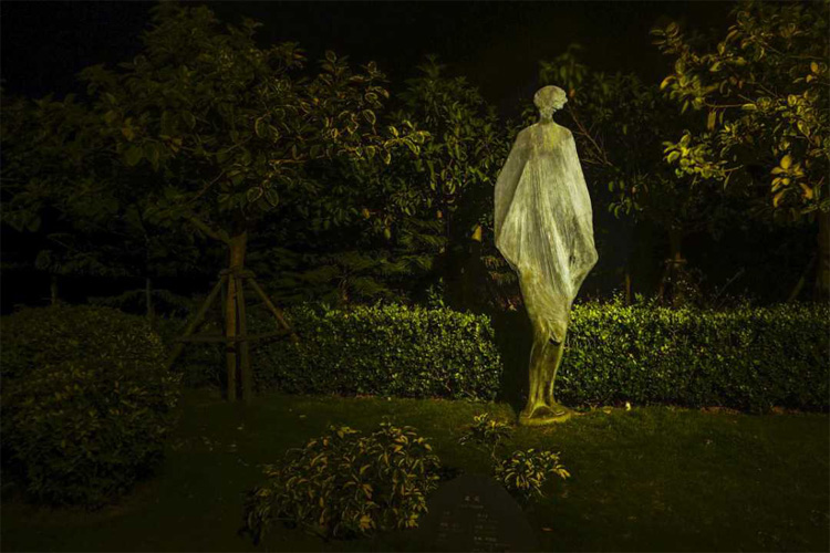 室外雕塑照明我看到的经典案例不多,留下深刻印象的是杭州西湖边上的几尊人物塑像。其一是钱王祠边上的钱镠立像,灯具安装在钱王对面的树木上,直接将树影也投射在了雕像上面,形象逼真,让人感到不怒自威的一股气势扑面而来。还有一尊是秋瑾雕塑,人物形象很端庄,2700K色温的光从对面立杆投射过来,因为雕塑远在路外的园林里,人行在路上是看不到光源的,只能看到雕塑在灼灼生辉。巧妙地利用了地形地貌来做照明设计,得到的效果就会很好。